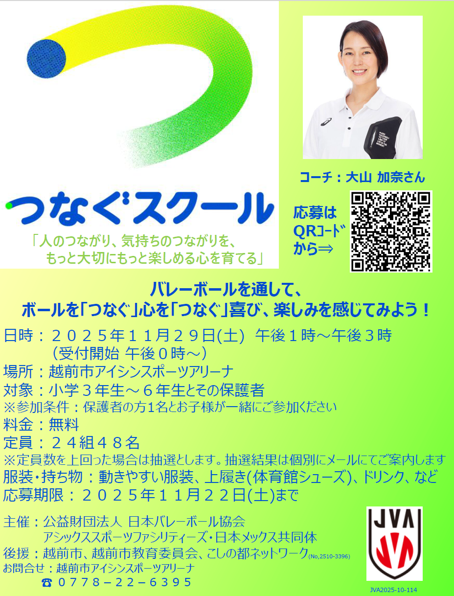2025年11月29日(土) 日本バレーボール協会「つなぐスクール」開催します